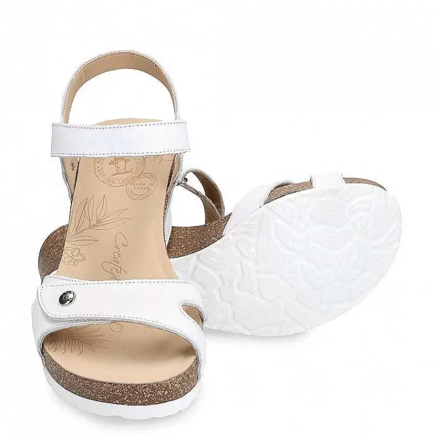 Sandalen Met SleehakKlittenbandsluiting.Nappaleer Wit.Leren Voering.Anatomische Binnenzool.Lichte, Flexibele, Duurzame S…