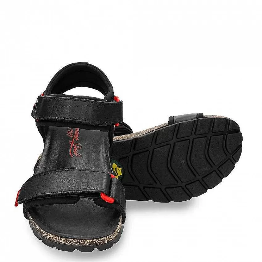 HerensandaalKlittenbandsluiting.Nappaleer Zwart.Synthetische Interlook Voering.Anatomische Binnenzool.Flexibele En Duurz…